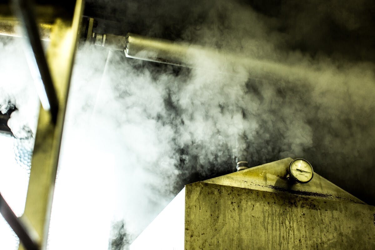 [桜のチップを使い、燻製にしていきます。写真の通り、地御前牡蠣は熱を加えても縮んでしまうことはありません。]